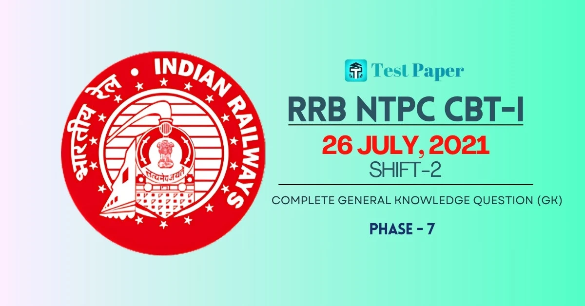 RRB NTPC Previous Year Paper 26 July 2021 Shift-2 | 40 GK MCQs